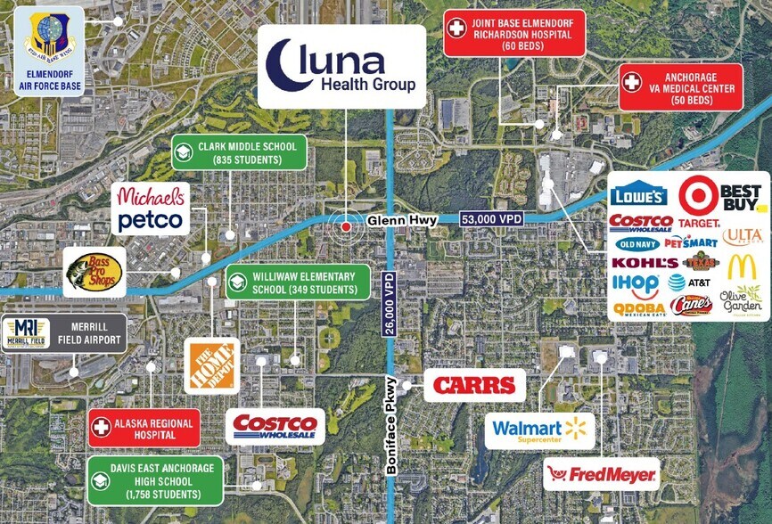 - Minutes from Joint Base Elmendorf–Richardson, a major combined U.S. Air Force and U.S. Army installation (40,000 military-affiliated personnel)