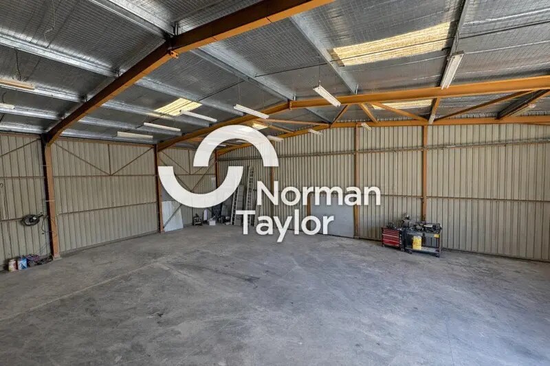 À l'extérieur, la parcelle permet une circulation aisée, du stationnement ainsi que des possibilités de stockage complémentaire ou d'aménagement selon vos besoins.