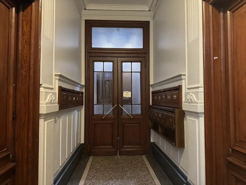 Immeuble de logements avec une belle façade de style haussmannien situé en angle de deux rues passantes et commerçantes, proche des transports en commun.