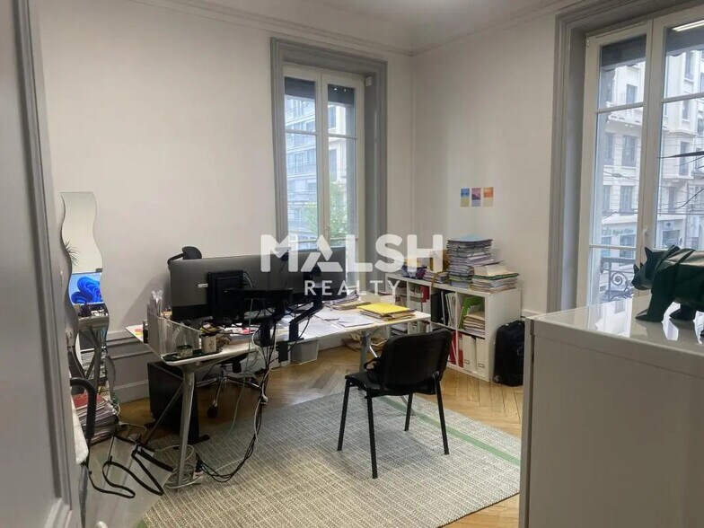 Nous vous proposons à la location, une surface de bureaux de 100 m² environ, au sein d'un immeuble hausmannien. Situés à proximité de l'avenue de Saxe, ces bureaux bénéficient d'un accès en transports en commun. LYON 6 - Bureaux de 100,35 m² - A LOUER ERP : 5ème catégorie Les locaux se distinguent par leur cachet et leur qualité architecturale : Parquet en bois massif, Plafonds hauts, Cheminée décorative d'époque Chauffage individuel électrique Climatisation réversible Espaces lumineux, bénéficiant d'une bonne exposition naturelle. Immeuble équipé d'un ascenseur, facilitant l'accessibilité et un contrôle d'accès pour la sécurité. Sanitaire privatif Bureaux cloisonnés Situation/Transports : Métro Métro A, Métro B Tram Tram T1 Bus Lignes c3, c4, c5, c9, c13, c14, c25 vélo'V Stations Vélo'V à proximité Dépot de garantie : 3 mois de loyer HT/HC