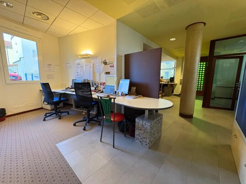 L'agence Lyaudet Drajnudel, spécialiste en immobilier d'entreprise et résidentiel, vous propose à la location ces bureaux d'environ 130 m², idéalement situés au coeur du bourg de Mably. Ce local, fonctionnel et lumineux, se compose de 8 postes de travail avec un bureau individuel, un espace open space, une salle de réunion, une zone d'archives, ainsi qu'un coin cuisine et des sanitaires. Les bureaux sont entièrement équipés : climatisation réversible, réseau informatique, fibre optique, et bénéficient d'un excellent confort de travail grâce à une luminosité naturelle généreuse, maîtrisée par des brise-soleil en façade. parking gratuit devant ce bien. A découvrir rapidement ! Les informations sur les risques auxquels ce bien est exposé sont disponibles sur le site Géorisques : http://www.georisques.gouv.fr Copropriété de 2 lots (Pas de procédure en cours).