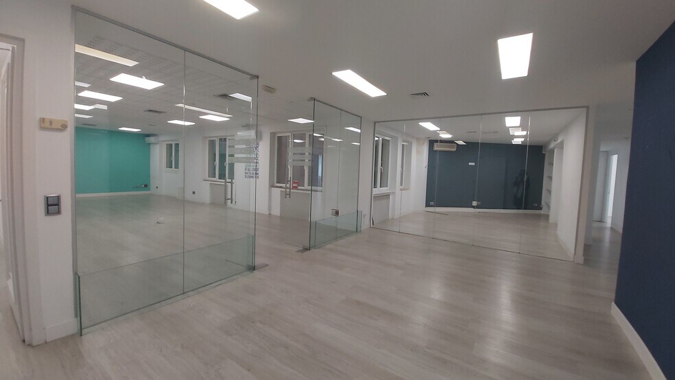 Oficina situada en la entreplanta, de carácter exterior, ubicada en un edificio de uso mixto. El espacio cuenta con una superficie aproximada de 511 m² y ha sido recientemente reformado, encontrándose lista para su uso inmediato. La disposición exterior permite posibilidad de rotulación o publicidad, conforme a la normativa aplicable. La oficina presenta una distribución diáfana, compartimentada mediante mamparas, lo que facilita la adaptación del espacio a distintas necesidades operativas. Dispone de suelo técnico elevado, falso techo modular con luminarias empotradas y luminarias tipo LED, favoreciendo la eficiencia y la flexibilidad en la implantación de instalaciones. El inmueble está bien dotado en términos de confort y seguridad, contando con calefacción central, fibra óptica, sistema de protección contra incendios, aseos propios, cocina, ventanas practicables y buena entrada de luz natural. El edificio dispone de seguridad 24 horas, control de accesos, circuito cerrado de televisión y dos ascensores. Se ofrecen dos plazas de aparcamiento disponibles de forma opcional, lo que aporta funcionalidad adicional. El conjunto presenta un buen estado de conservación y cuenta con certificación energética C, configurando un espacio adecuado para uso profesional o corporativo.