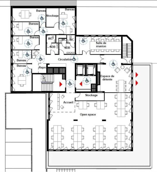 Les espaces proposés se présentent sous la forme de plateaux rénovés offrant un cadre de travail lumineux et fonctionnel. L’aménagement privilégie des configurations en open space permettant une organisation flexible et adaptée à différents usages professionnels. Les plateaux bénéficient d’une rénovation qualitative incluant une climatisation intégrée, un éclairage encastré ainsi qu’une moquette récente assurant un bon confort acoustique et visuel. Certains niveaux disposent également d’un accès à une terrasse privative apportant un environnement de travail agréable. Les circulations et les prestations techniques ont été modernisées pour répondre aux standards actuels. Les espaces sont immédiatement opérationnels pour l’installation d’équipes de bureaux.