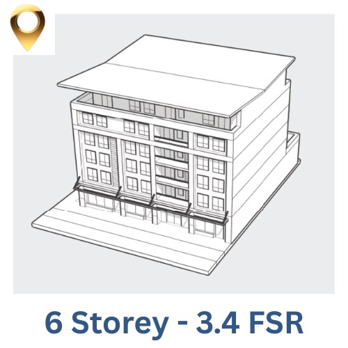 - Potential to assemble the entire block for a maximum FSR of 3.4 and 275,552 buildable square feet