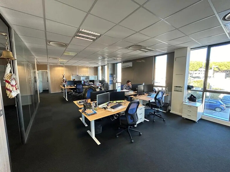ARTHUR LOYD Marseille Méditerranée vous propose à la location une surface de bureaux en très bon état et très bien agencée dans un immeuble récent de standing situé dans la ZAC de Saumaty Séon, en ZFU, au sein d'un site site clos et sécurisé, avec accès immédiat à l'A55 et à proximité de l'A7. Ces bureaux sont accompagnés de 5 places de parking privatives (loyer en sus). Ils sont également disponibles à la vente (nous consulter). Configuration des locaux : - Accueil - Bureaux cloisonnés - Open space - Salle de réunion - Cuisine et espace de convivialité - Réserve Prestations : - Immeuble Norme RT 2012 - Eclairage basse luminance - Sols moquette en dalles - Climatisation réversible et VMC double-flux - Plinthes périphériques - Contrôle d'accès 1 parking en sous-sol (loyer en sus) 4 parkings extérieurs sécurisés (loyer en sus)