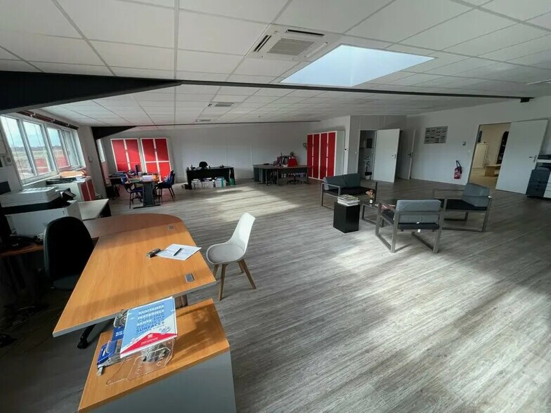 - Mezzanine entièrement aménagée de 210 m² (sol, faux plafond, climatisation, éclairage) avec accès par escalier ou monte charge (1 400kg) composée d'un open space (150 m²), d'un espace salle de pause/cuisine (33 m²) et d'une salle de réunion (40 m²). WC/sanitaires au RDC et en mezzanine