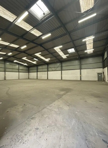 Un vaste local de stockage avec une hauteur sous plafond supérieure à 7 mètres, offrant un excellent volume