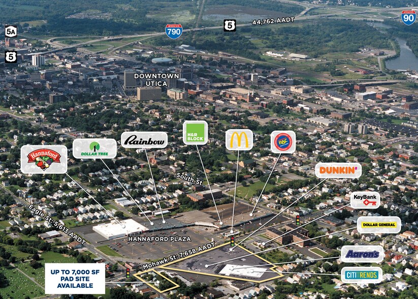 Situé dans la vallée de la Mohawk et idéalement situé à l'intersection des rues Mohawk et Eagle, ce site de camping apporte de la valeur à un marché en pleine croissance. Avec près de 10 000 pieds carrés à développer, l'établissement est une destination très visible au sein du centre commercial existant qui comprend Hannaford, Walgreens, McDonald's et Dunkin. L'emplacement attire près de 120 000 visiteurs dans un rayon de 11 miles et se trouve à quelques minutes du centre-ville d'Utica, du collège d'Utica et de nombreux centres médicaux du système de santé de la vallée de la Mohawk.