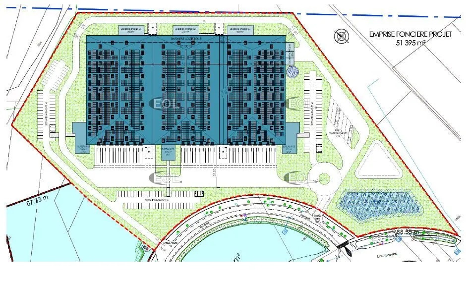 EOL, spécialisé en immobilier d'entreprise, vous propose à la location une plateforme logistique de 18 800 m² située à Montbartier (82). Celle-ci se compose de 17 400 m² de stockage, de 450 m² de locaux de charge, de 150 m² de locaux techniques et de 800 m² de bureaux et locaux sociaux pour une surface totale de 18 800 m² divisible à partir de 5 700 m². Ce type d'actif a une hauteur libre sous poutre de 11 m avec une charge au sol de 5t/m². Il dispose de 22 portes à quai avec niveleurs 6t, ainsi que de 150 emplacements de parking VL, de 7 places d'attente PL et d'une cour camion de 35 m. Cette offre commercialisée par EOL est située à Montbartier (82) à proximité des axes autoroutiers A62 et A20. Disponibilité : nous consulter N'hésitez pas à nous contacter pour tout renseignement complémentaire. Entrepôt simple face composé de 3 cellules de stockage de 5 700 m² environ Certification visée BREEAM Very Good Hauteur : 11 m Accès à quai : 22 Charge au sol : 5 t/m² Sprinkler R.I.A. Voierie lourde