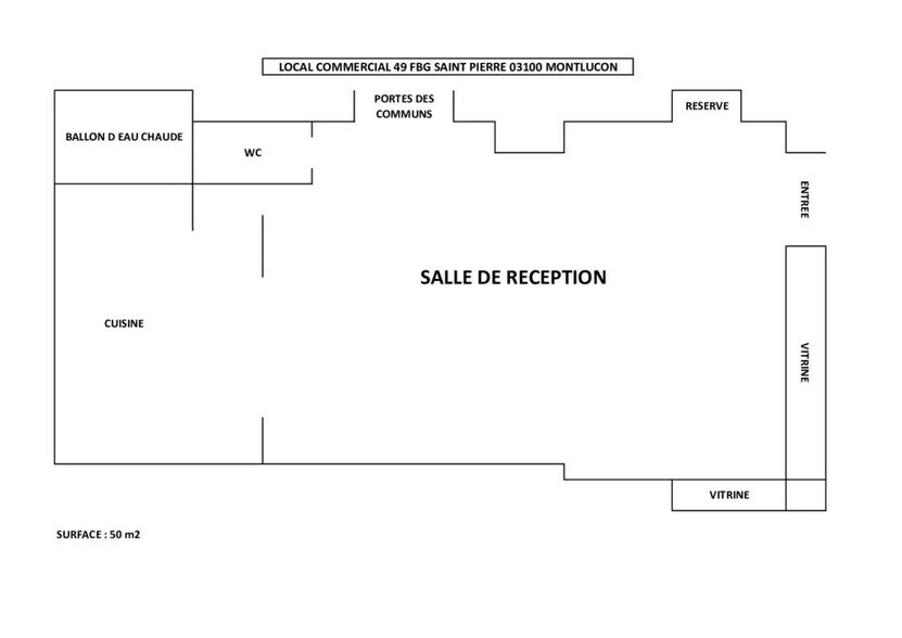 | Espace total disponible | 50 m² | Surface commerciale utile | 50 m² |