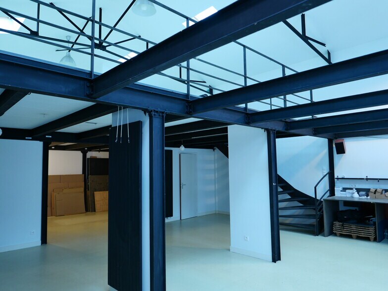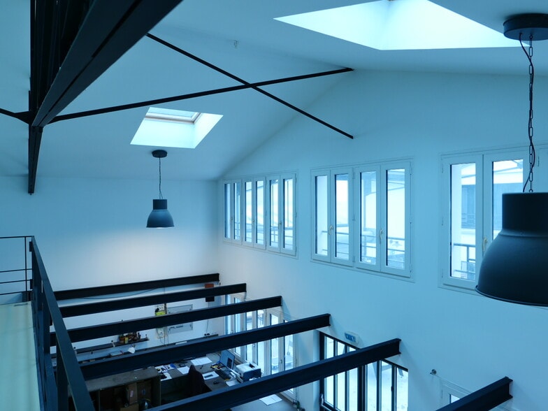 L'ensemble au style industriel et atypique avec une structure métallique apparente, très lumineux grâce aux nombreuses fenêtres en façade et aux 6 velux au niveau du 1er étage, dispose d'une entrée indépendante sur une charmante cour couverte donnant directement sur rue.