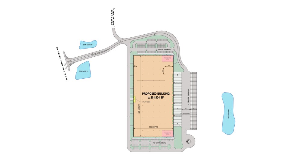 - Truck Court: 210' w/concrete apron