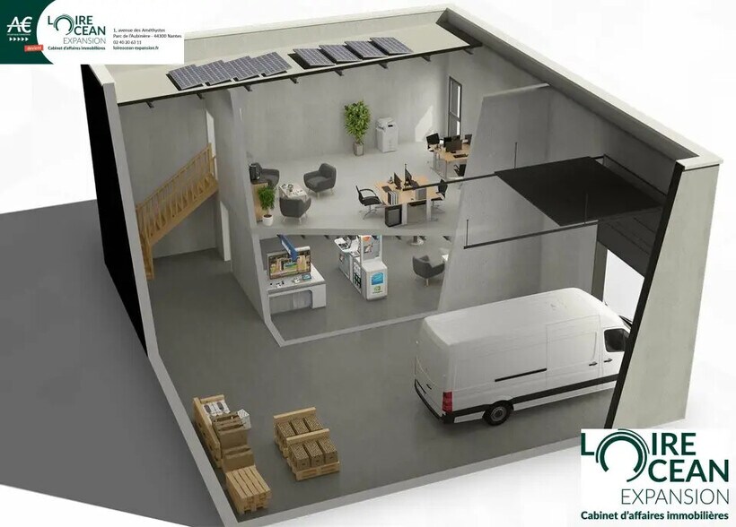 ATLANTIQUE EXPANSION vous propose à la vente un local d'activité neuf livré brut et réseaux et fluide en attente d'une surface d'environ 227m² comprenant 174m² environ d'espace atelier avec possibilité de showroom. A l'étage une surface de bureaux d'environ 51m², 2 places de stationnement. Situé à l'OUEST de l'agglomération Nantaise à 15 minutes de l'aéroport de Nantes. ATLANTIQUE EXPANSION 02.40.20.63.11 - Couverture bac acier - Menuiseries posées - Nbre Parkings extérieurs : 3 - Porte sectionnelle - Vitrine