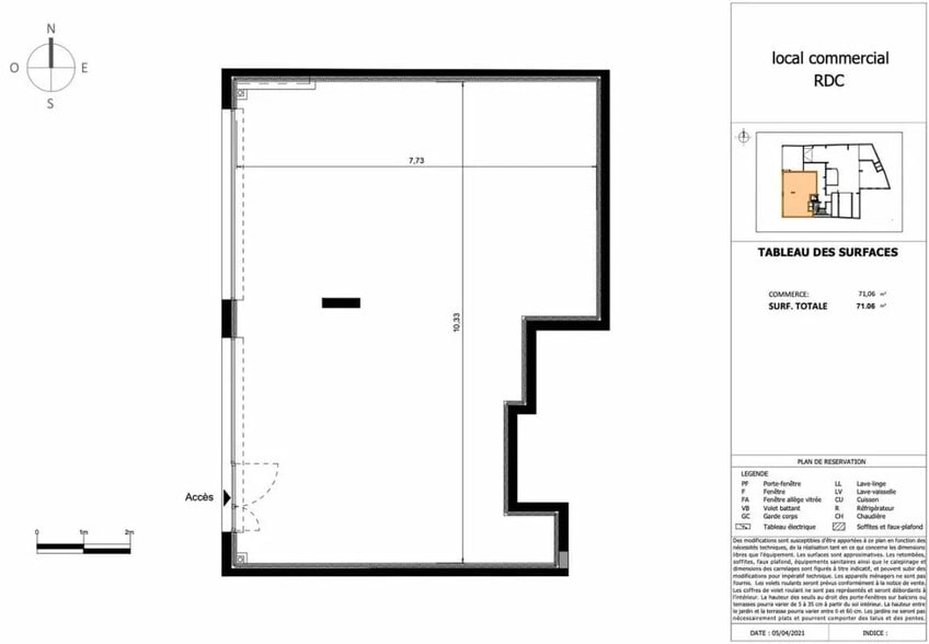D'une surface totale d'environ 70 m², ce local est disponible en VEFA (Vente en l'État Futur d'Achèvement). Il sera livré brut, fermé et vitré, avec tous les fluides en attente, offrant ainsi un aménagement sur mesure selon votre activité.