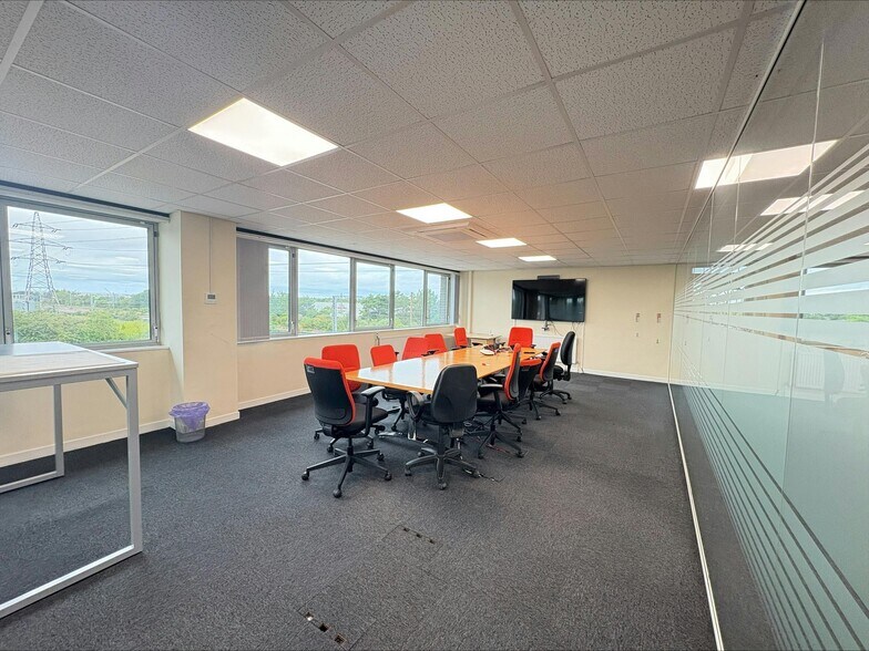 Marmalade House is a modern three-storey office building located within Alpha Park, an established business park in Bretton, Peterborough. The property offers predominantly open-plan office space across ground and first floors, with potential for subdivision. The building features suspended ceilings with recessed lighting, raised access floors, air conditioning, and double-glazed perimeter windows providing good natural light. Facilities include a reception area, meeting rooms, kitchenettes, and WCs on both floors. The property is self-contained with its own entrance and benefits from on-site parking. It is well located for road access via the A47 and A1(M), with Peterborough city centre and railway station nearby. Local amenities are available within Bretton Centre and surrounding areas.