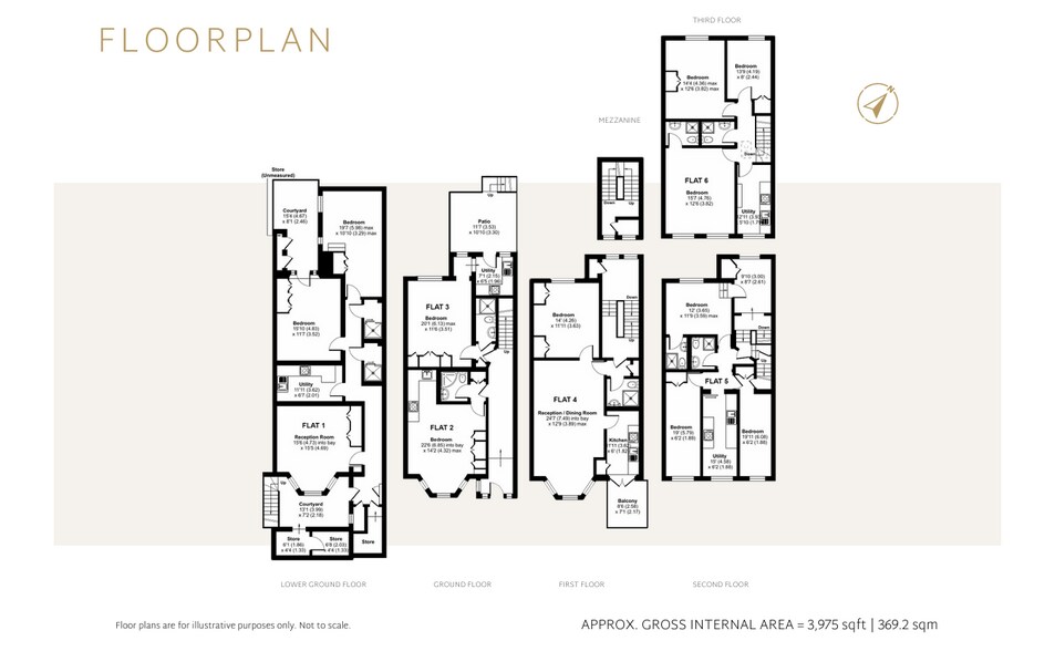 6 self-contained units (3×3-bed, 1×1-bed, 2×studios)