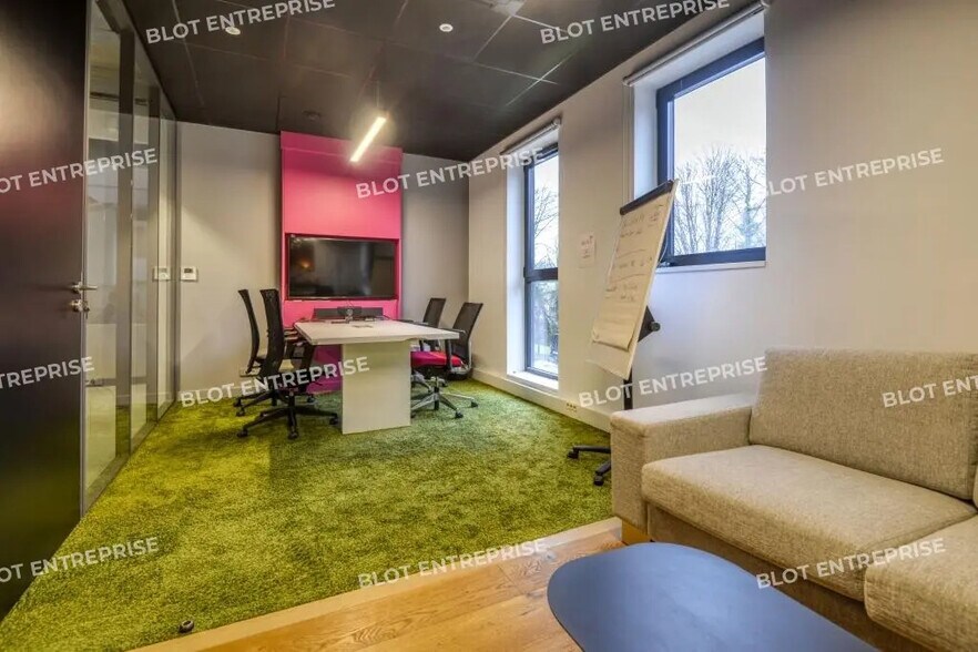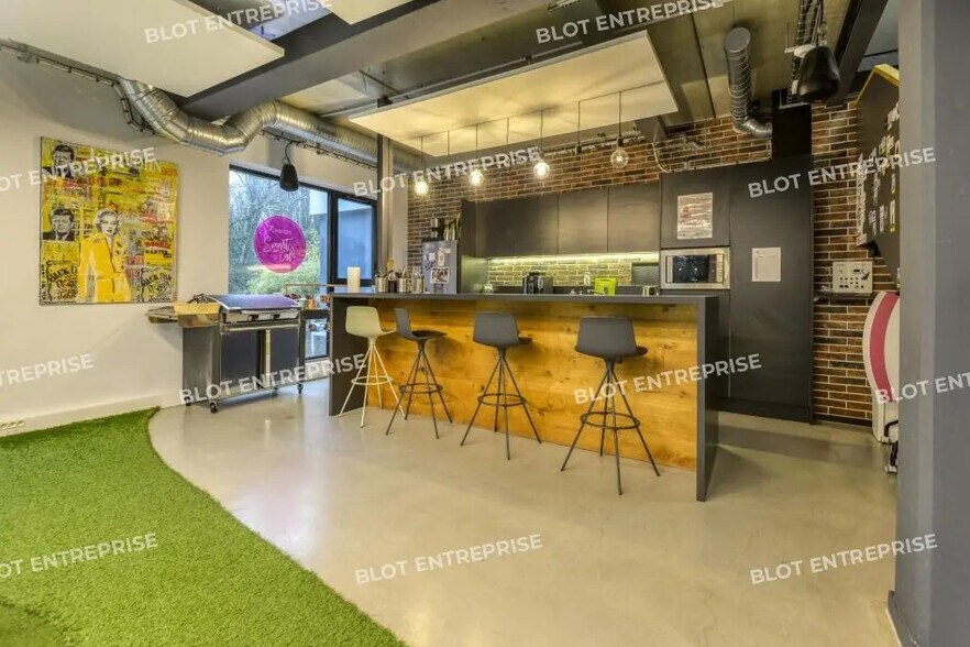 Au 1er étage, un superbe plateau de bureaux comprenant un espace accueil, une salle de réunion, deux grands open spaces d'environ 60 m² et 90 m², 8 bureaux, un local technique, et 2 phone box le tout climatisé.