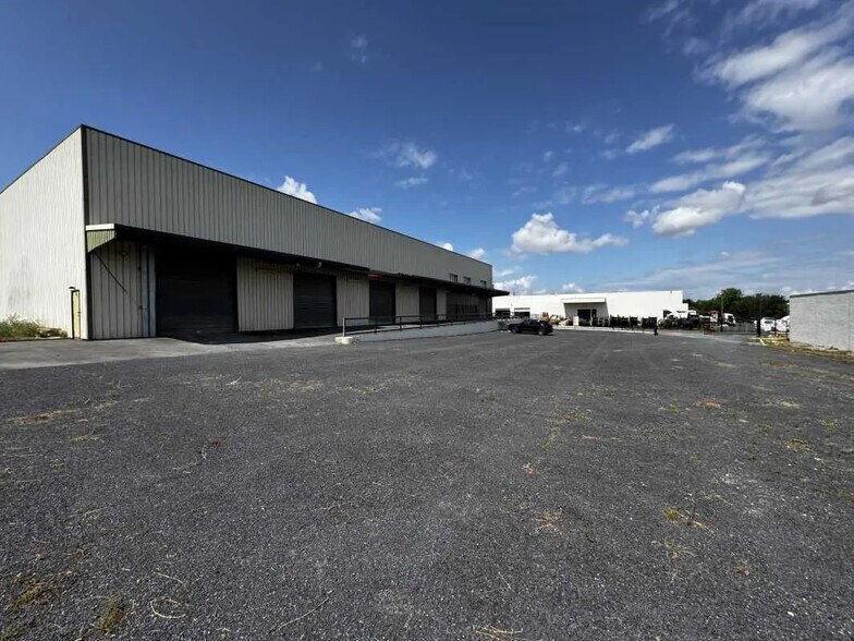 A l'extérieur, une plateforme avec 5 portes sectionnelles, un parking VL, une cour goudronnée et espaces verts.