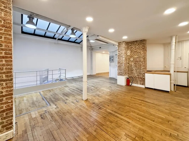 Quartier des Batignolles. Consult'im vous proposes des bureaux à louer en rez de chaussée dans un local type ancien atelier/loft de 135 m² CARACTERISTIQUES DE L'OFFRE Au sein d'un immeuble résidence, un local commercial en duplex composé d'un : RDC : 92m² Entrée indépendante donnant sur rue Un grand open space lumineux avec une verrière zenitale Belle hauteur sous plafond de 4 m 2 phone box cloisonnées Sanitaire avec lave-mains Une cuisine Sous-sol : 43m² Accès par un escalier intérieur Tremis possible avec installation d'un ascenceur PMR Aménager actuellement en open space Triple vitrage + rideau de fer CONDITIONS FINANCIERES Bail : dérogatoire Loyer mensuel : 5 000€ HT HC Disponibilité : immédiate Climatisation réversible;Accès PMR;Interphone;Luminaires LED;Parquet;Sous-sol;Verrière