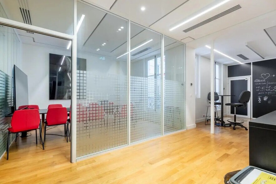 Ces bureaux récemment rénovés offrent un environnement de travail lumineux et confortable, articulé autour d’un grand espace ouvert prolongé par des zones cloisonnées. L’aménagement comprend un open space pouvant accueillir une équipe établie, complété par deux salles de réunion fonctionnelles. Les volumes bénéficient d’une belle hauteur sous plafond, d’un balcon filant et d’une atmosphère chaleureuse grâce au parquet. L’ensemble est climatisé, équipé en câblage RJ45 et proposé en prestation de services incluant notamment le mobilier et l’accès internet, permettant une installation immédiate et sans travaux.