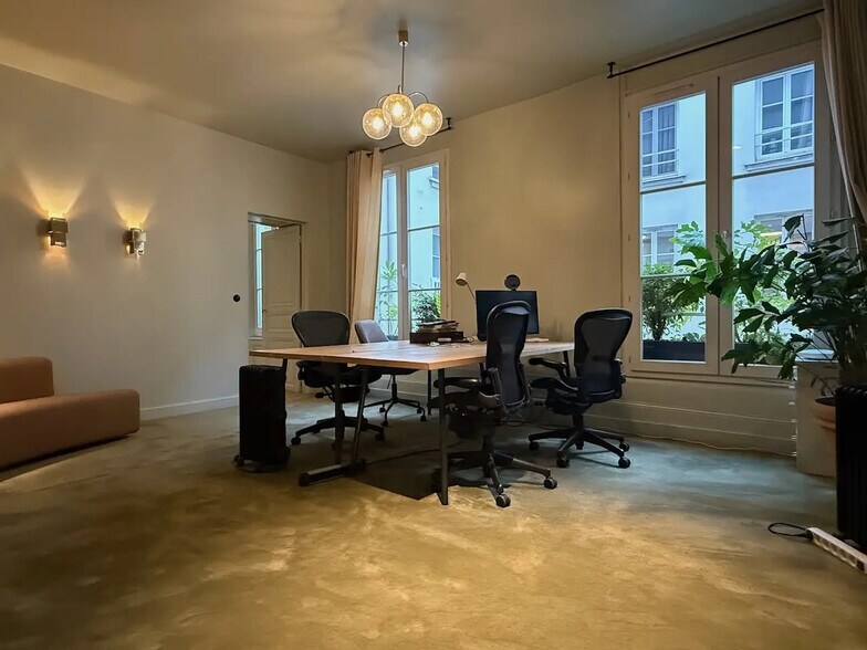 À louer, bureaux d'environ 80 m² en excellent état, au calme sur cour, dans un immeuble de bon standing. Locaux climatisés, en excellent état, composés de trois bureaux, en enfilade dont un en entrée pouvant faire office d’accueil, cuisine, sanitaires et rangements. Très belle hauteur sous plafond jusqu’à 3,50 mètres. Prestations : climatisation réversible, fibre optique, double vitrage, ascenseur. Offre rare pour la qualité et le design des aménagements intérieurs, aux finitions soignées et au parti pris esthétique peu courant pour des bureaux de cette surface et de ce niveau d’adresse.