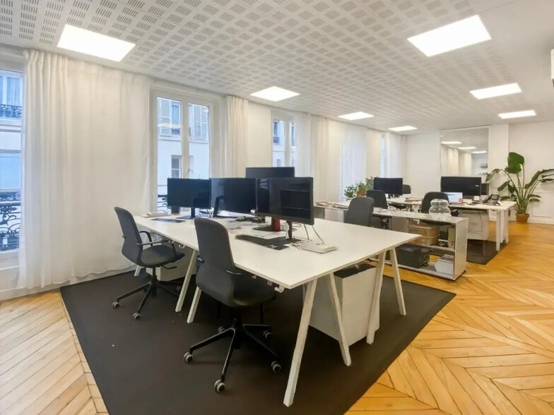 Métro Sentier, dans un immeuble de standing, à louer au 3ème étage, une surface de 85 m² rénovée. CARACTERISTIQUES DE L'OFFRE Une entrée Un grand open space Deux bureaux ou salles de réunion Un espace convivialité avec kitchenette Deux wc Climatisation réversible CONDITIONS FINANCIERES Type de bail : 3/6/9 ans Loyer mensuel :3 182 € HT HC Disponibilité : 04/05/2023 Climatisation réversible