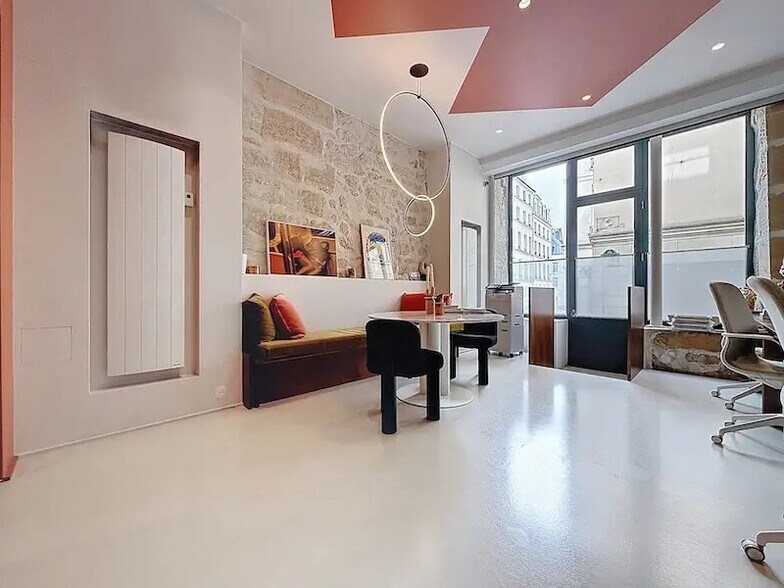 Boutique-bureau de plain-pied à louer, à proximité immédiate des Grands Boulevards (M° Bonne Nouvelle). Surface d’environ 50 m², louée meublée avec mobilier design. Configuration : open space aménagé, un bureau fermé, une cuisine, toilettes et local de rangement. Grande hauteur sous plafond (3,15 m), sol en béton ciré, pierres et poutres apparentes. Surface lumineuse avec vue dégagée sur la rue, vitrine et rideau de sécurité. Loyer : 2 500 € HT / mois, charges, électricité et internet compris. Mobilier design, meublé, parfait état, Plug & play
