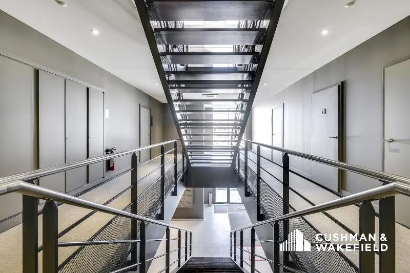 Immeubles neufs en R+2, privilégiant la luminosité naturelle Menuiseries aluminium, Système d'accès sécurisé, Ascenseurs, Faux-plancher technique, Climatisation réversible, VMC, Stores intérieurs sur toutes les façades Eclairage basse luminance, encastré en faux plafond, Sols moquette en dalle, Trame de fenêtre : 1,35 m Trame de bâtiment : 18 m de profondeur HSP : 2,60 m Les Bureaux sont aménagés et cloisonnés. Site clos avec portail électrique parkings aériens et sous-sol - Ascenseur - Contrôle d'accès - Interphone - Luminaires faux plafond - Moquette - Plinthes périphériques - Sanitaires communs - Stores