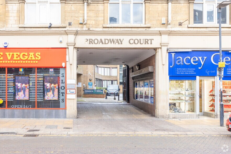 Broadway Court comprend un immeuble de bureaux de trois étages auquel on accède depuis Broadway par une arche menant à une cour. Les suites comprennent de la moquette partout, un plafond suspendu, un éclairage fluorescent encastré et l'utilisation des toilettes communes pour hommes et femmes. La suite de l'aile sud comprend également un coin cuisine séparé.