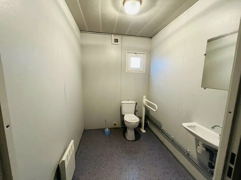 A VENDRE SUR ZONE ZA PORT JÉRÔME SUR SEINE Un terrain constructible de 1 708 m2 disposant de : - 257 m2 de bureaux de type modulaires : 1 accueil d'environ 21m2, 2 bureaux cloisonnés d'environ 15 m2, 3 grands bureaux cloisonnés d'environ 25 m2 pouvant être utilisés en open space et salle de réunion, 1 réfectoire d'environ 35 m2, 1 salle archive d'environ 15 m2, 1 espace de stockage sécurisé d'environ 15 m2, 2 WC dont 1 PMR, 1 local technique. Aménagements : sol souple, câblage RJ 45, éclairage néon, chauffage électrique, menuiseries PVC équipés de volets roulant pvc manuels. - 135 m2 de Vestiaires et locaux sociaux de type modulaires : Réfectoire d'environ 33,74 m2, Vestiaire d'environ 33,74 m2, sanitaires d'environ 10 m2 proposant 5 douches et lavabos, sanitaires WC, 2 pièces cloisonnées pouvant servir de local de stockage ou bureaux technique. - Parking privatif traité en enrobé environ 200 m2. - Terre plein empierré d'environ 500 m2.