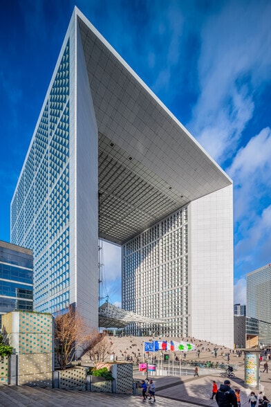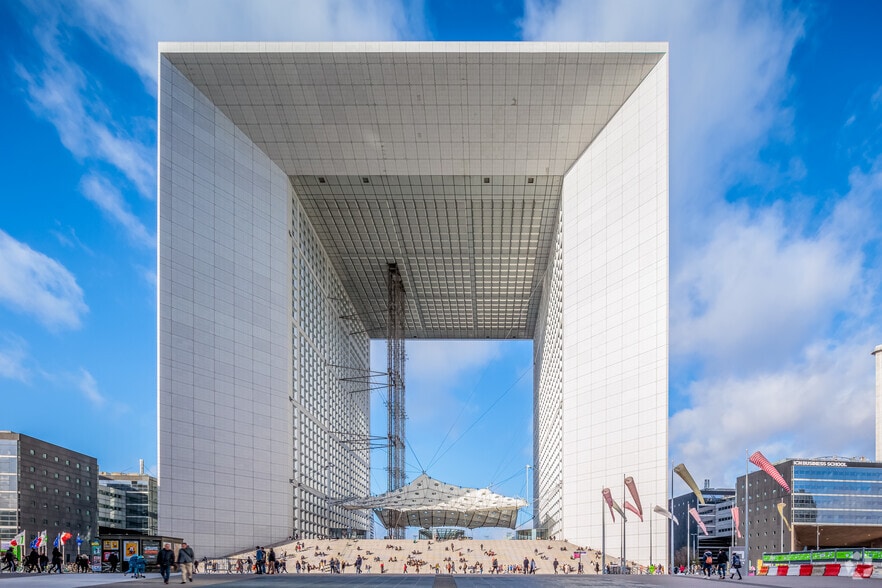 La Grande Arche constitue un symbole majeur du quartier d’affaires de La Défense, offrant un positionnement exceptionnel sur l’axe historique reliant Paris à l’Ouest métropolitain. Le bâtiment propose des espaces entièrement modernisés, avec un socle serviciel totalement rénové en 2023 comprenant auditorium, business center, hall d’accueil, cafétéria et espaces de réunion. La localisation garantit une accessibilité incomparable grâce à la proximité immédiate du pôle multimodal La Défense, desservi par les lignes de transport en commun majeures : métro, RER, tramway et lignes Transilien. L’environnement urbain offre une gamme très large de services : commerces, restauration, sport, banques et infrastructures du quotidien. Les utilisateurs bénéficient également d’un accès privatif au rooftop et à son restaurant panoramique, un atout rare dans le secteur. L’immeuble répond aux standards IGH et propose une sécurité renforcée ainsi que des prestations techniques de haut niveau.