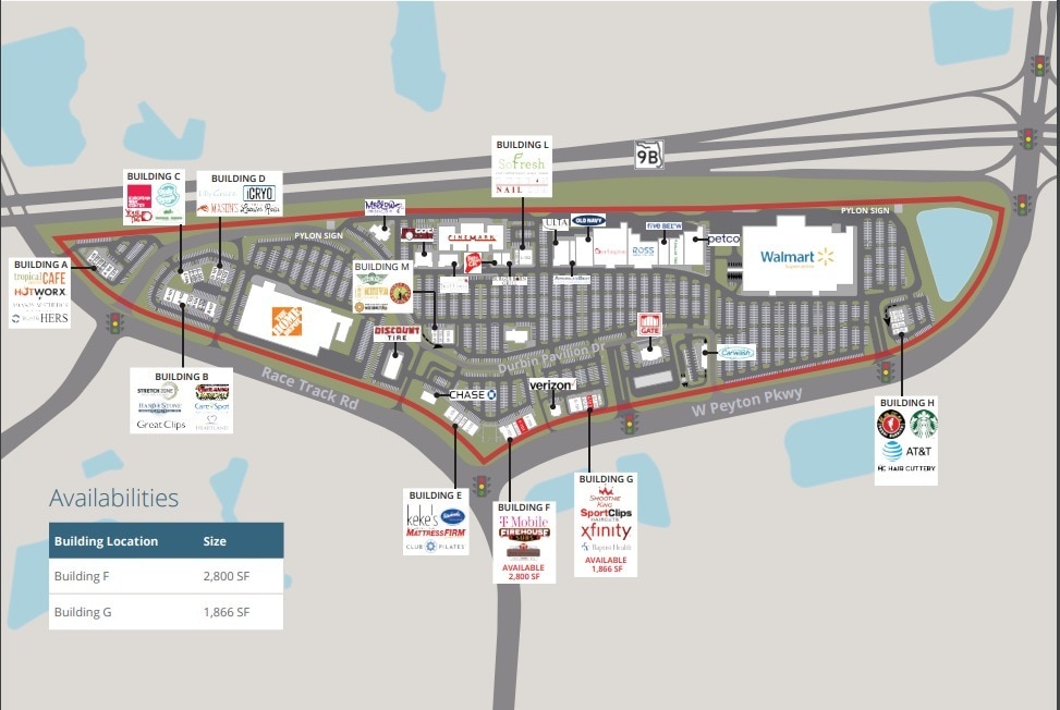 - Points d'accès signalés sur Race Track Rd et West Peyton Parkway.