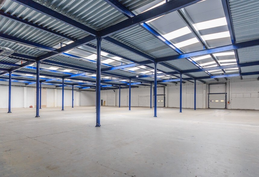 The premises provide predominantly open-plan accommodation across multiple levels, suitable for a range of Class E uses. The space offers clear-span floor plates with exposed structural steel beams and concrete floors throughout. An internal staircase links the floors, with a mezzanine section providing additional usable space.