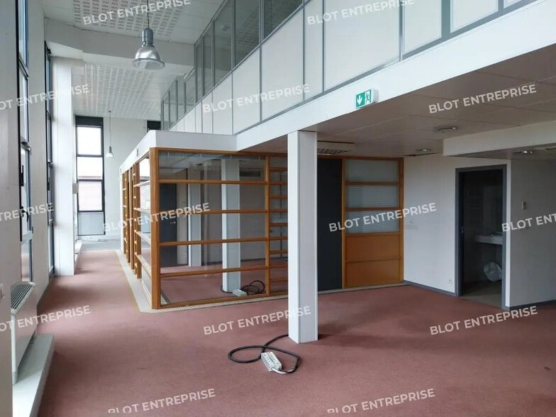En mezzanine : 1 salle de réunions divisible, 2 open-spaces , 1 salle d'archives et un local technique.