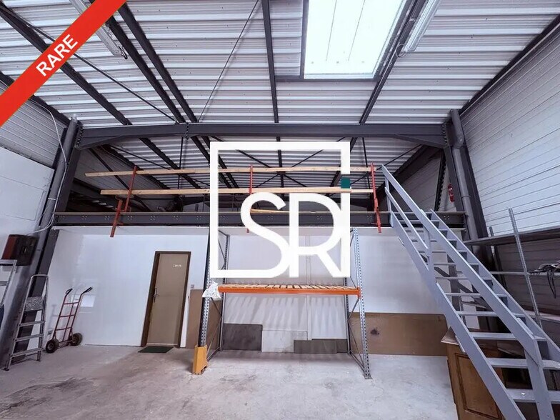 Un grand dépôt avec 9,5 m de hauteur sous plafond et deux mezzanines offrant des surfaces de stockage supplémentaires.