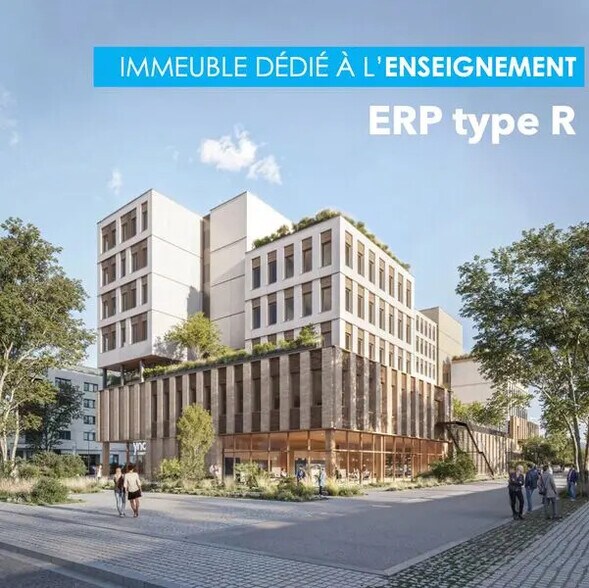 À Rouen, découvrez une opportunité exceptionnelle de location, idéalement conçue pour un usage éducatif. Offrant une superficie totale de 5 605 m², ces espaces modulables, divisibles à partir de 500 m², s'adaptent parfaitement à divers besoins pédagogiques : salles de cours, espaces collaboratifs, informatiques, administratifs et de coworking étudiant. L'immeuble proposera 4 plateaux divisibles à partir de 500 m², offrant des espaces flexibles adaptés à l'implantation d'un établissement d'enseignement, centre de formation ou campus pédagogique. Les plateaux modulables permettront d'accueillir différents usages : salles de cours, espaces collaboratifs, salles informatiques, bureaux administratifs et espaces de coworking étudiant. Le bâtiment offrira notamment : - Plateaux modulables - Accessibilité PMR - Performance énergétique RT 2012 - Raccordement au réseau de chauffage urbain CPCU - Prestations techniques modernes : double vitrage, ventilation adaptée ERP, équipements performants - Sanitaires en parties communes Classé ERP catégorie 1 - type R (enseignement / formation), l'immeuble pourra accueillir un grand nombre d'étudiants et de personnels. Des aménagements spécifiques pourront être réalisés avec le bailleur selon les besoins pédagogiques. Loyer annuel aménagé : 230 euros HT/m²/HC, incluant faux-plancher, climatisation, cloisonnement, traitement acoustique, courants forts et faibles et peintures. Le bâtiment bénéficiera de performances environnementales renforcées : RT 2012 amélioré (Bbio -10 %, CEP -20 %), label E3C1 et label bâtiment biosourcé niveau 1. Au rez-de-chaussée, plusieurs espaces mutualisés seront proposés, dont 2 amphithéâtres. Stationnement : - 40 places de parking en sous-sol (1 500 euros HT / place) - 5 emplacements motos - 151 places vélos au rez-de-chaussée Situation/Transports : Tram Tram ligne 4 - Direction centre-ville 200 m à pied (3 min) Bus Bus ligne T5 400 m à pied SNCF Gare TGV - Rouen centre-ville 8 min de tram (4 arrêts) Dépot de garantie : 3 mois de loyer HT/HC