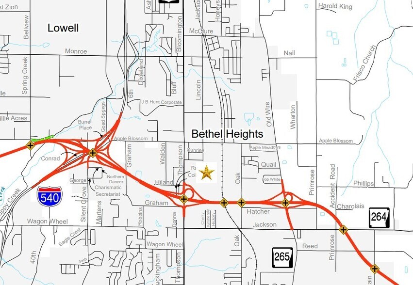 Exellent location with high visibility. New Proposed Springdale Northern Bypass Highway 612 will run just south of property. Proposed to have on/off ramp nearby. 2 Miles from JB Hunt corporate. Rear parcel is adjacent to existing railway, possible rail access available. Will subdivide. Prices per acre vary based on portion of parcels desired.