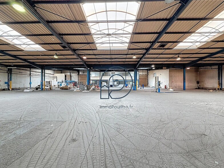 Surface totale 3 870 m² (3 339 m² d'entrepôt + 531 m² de bureaux), divisible à partir de 1 000 m². Ossature métallique, bardage double peau, toiture bac acier isolée. Hauteur sous poutre 5,5 à 7 m. 3 portes sectionnelles (4 x 5 m) + entrée indépendante pour les bureaux. 75 places de parking. Pas d'amiante.