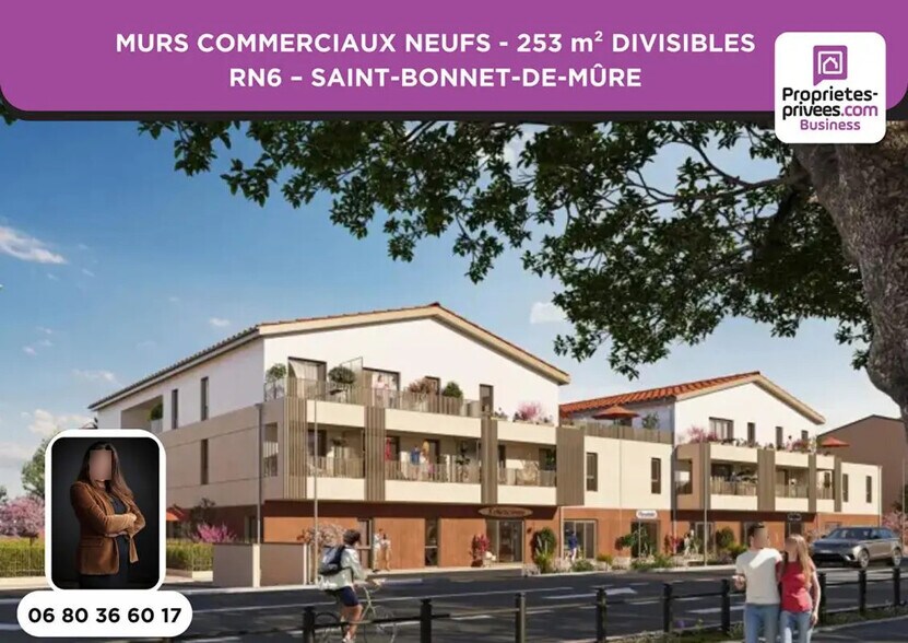 Au sein du programme neuf, à proximité immédiate du centre-bourg de Saint-Bonnet-de-Mûre et directement implanté sur l'Avenue Charles de Gaulle (RN6), axe structurant de l'Est lyonnais, local commercial de 253 m², divisible en 2 commerces indépendants de 117 m² et 133 m².