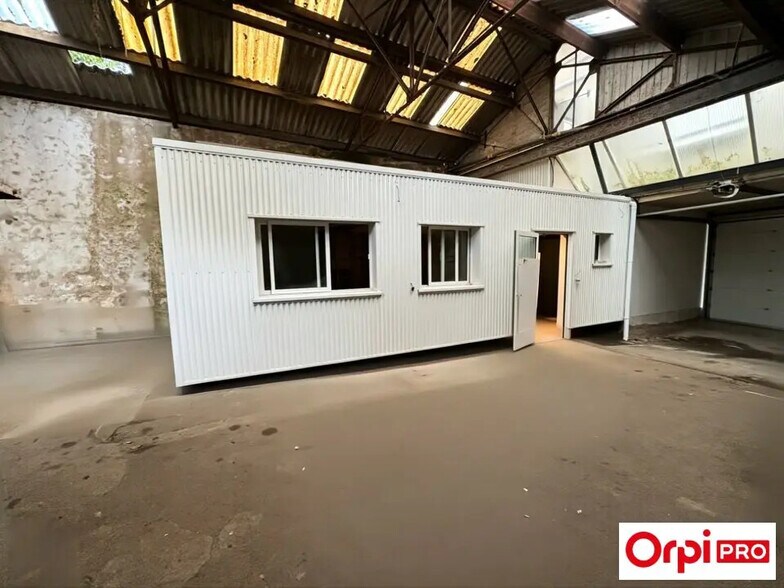 Ce hangar offre une surface de bureaux de 32 m² environ dans un algéco, ainsi qu'une surface d'activité de 379 m²