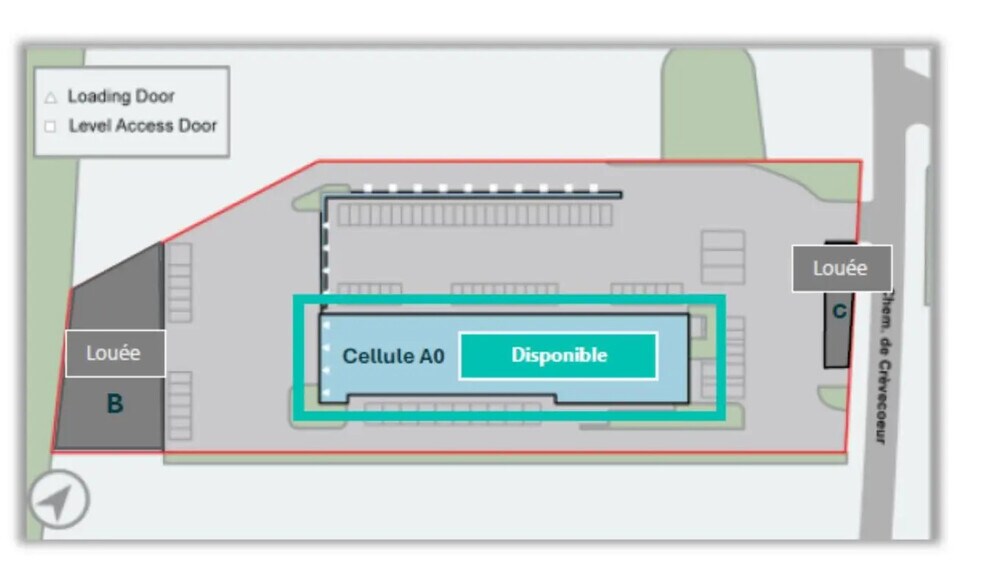 L’entrepôt comprend une vaste zone de stockage, des bureaux fonctionnels et des locaux techniques, le tout organisé pour optimiser les flux et faciliter l’exploitation. Le bâtiment bénéficie d’un accès plain-pied, de sept quais niveleurs, de vingt-trois portes de quai, d’une rampe poids lourds et d’une hauteur libre de 3,65 mètres. La structure en béton, l’éclairage LED et la résistance au sol de deux tonnes par mètre carré assurent un environnement robuste et performant. L’ensemble est complété par quatorze places de stationnement et une desserte routière et autoroutière particulièrement efficace, offrant un positionnement idéal pour des activités logistiques, de messagerie ou d’assemblage léger.