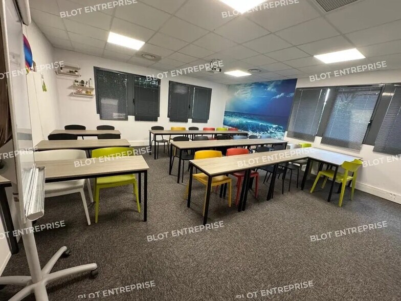 Un immeuble de bureaux au coeur de la ZAC ARMOR. Locaux rénovés et lumineux et cloisonnés - 428 m² au RDC et 14 parkings Accueil, 5 salles de formations , 1 salle de réunions, 6 bureaux et une cuisine. Accès au Parc d'Affaires par une voierie interne, séparée de l'espace public par un portail motorisé. Espaces verts : aménagement paysager de grande qualité. Proche du Chronobus, des restaurants et crèches. Disponibilité : A convenir Les informations sur les risques naturels, miniers, ou technologiques, auxquels ces biens sont exposés, sont disponibles sur le site www.georisques.gouv.fr Ascenseur dans l'immeuble Câblage informatique Climatisation : NC Mode de chauffage : Pompe à chaleur Locaux fibrés Avec stationnement(s) éclairage LED Fibre optique Année de construction : 2007 Revêtements des sols : moquette Type de plafonds : faux-plafonds Etat : Locaux de seconde main Accès mobilité réduite