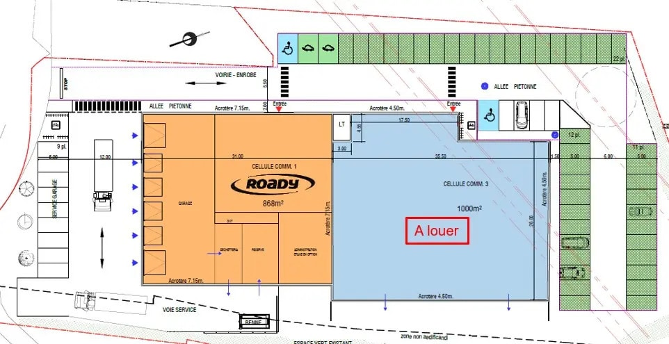 | Espace total disponible | 1 000 m² | Type de bien | Local commercial |