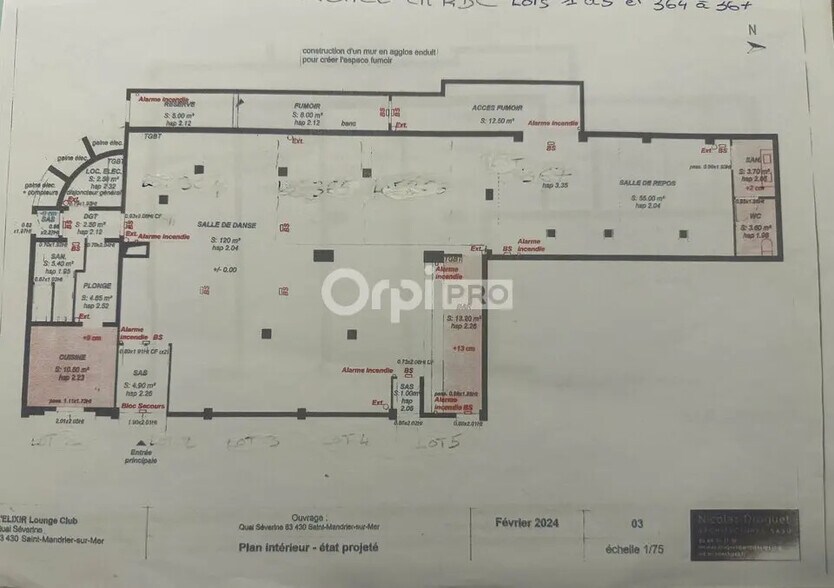 Il vous sera livré avec les arrivées d'eau, d' électricité, les évacuations, et des murs séparatifs blanc. Il y a 2,32 m de hauteur sous plafond. Possibilités d'acquérir plusieurs lots.
