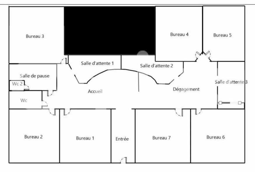 Immo-Entre-Pro vous propose à la vente un local commercial en rez-de-chaussée d'environ 254 m², situé au sein du centre commercial du Bois des Roches, dans un environnement résidentiel dense et dynamique. Description du bien : D'une superficie d'environ 254 m², le local bénéficie d'une organisation intérieure fonctionnelle et particulièrement adaptée aux activités recevant du public. Il s'articule autour d'un accueil central spacieux, distribuant harmonieusement l'ensemble des espaces : Entrée indépendante Accueil avec circulation fluide 3 salles d'attente distinctes permettant une gestion optimisée des flux 7 bureaux indépendants (Bureau 1 à Bureau 7), modulables selon l'activité Salle de pause Sanitaires : 2 WC Dégagement central structurant les circulations La configuration actuelle est idéale pour : cabinet médical ou paramédical, centre pluridisciplinaire, professions libérales, organisme de formation, activité tertiaire ou de services. Le local est entièrement de plain-pied, facilement aménageable et exploitable immédiatement. Points forts Emplacement au sein d'un centre commercial établi Secteur résidentiel à forte densité Organisation intérieure rationnelle Plusieurs salles d'attente permettant de sectoriser l'activité Bonne visibilité et accessibilité Il sera libre de toute occupation à compter de juillet 2026. Conditions financières Prix de vente : 380 000 Euros FAI Honoraires d'agence : charge vendeur