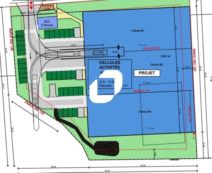 IMMPROVE immobilier entreprise vous propose un projet clé permettant de réaliser un bâtiment INDEPENDANT de 3800 m² en surface de plancher (rez de chaussée et mezzanine incluse) divisible éventuellement, 34 places VL proche axe route Bleue.