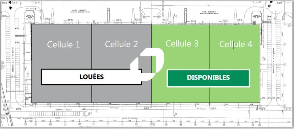 | RDC – Cellule 3 et 4 | 11 616 m² | 3/6/9 | 51,00 € HT-HC/m²/an 4,25 € HT-HC/m²/mois 592 422 € HT-HC/an 49 368 € HT-HC/mois | Industriel/Logistique | Construction achevée | Maintenant |
