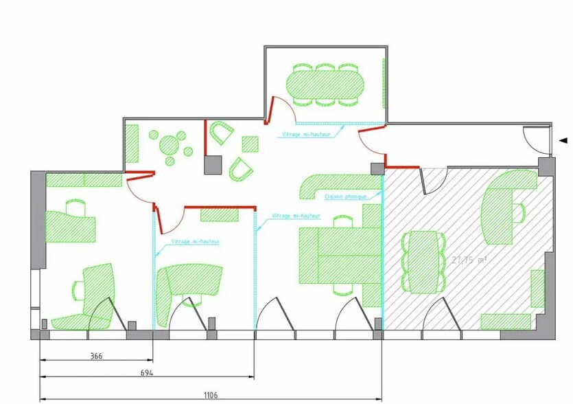 - Bureaux cloisonnés aménagés