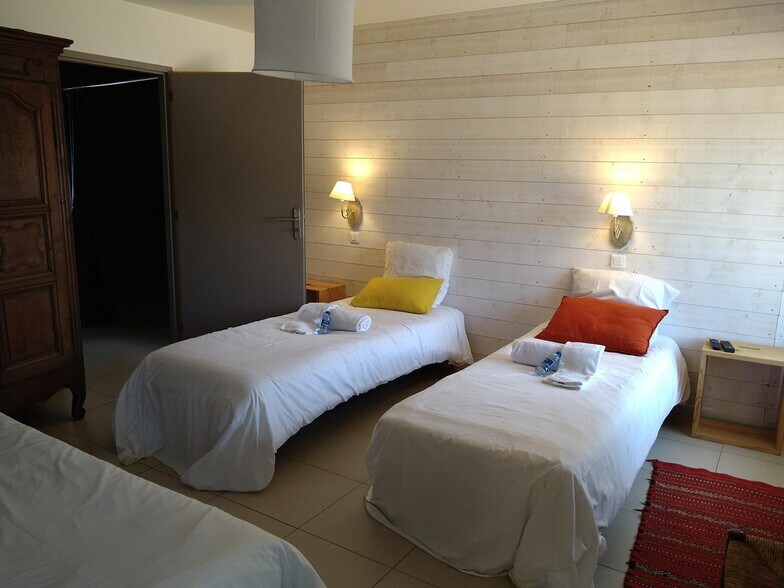 - Une grange entièrement réhabilitée comprenant cuisine collective, salle à manger et cinq chambres d'hôtes dont une en suite.
