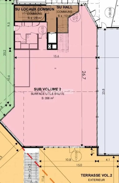| Espace total disponible | 358 m² | Type de bien | Local commercial |
